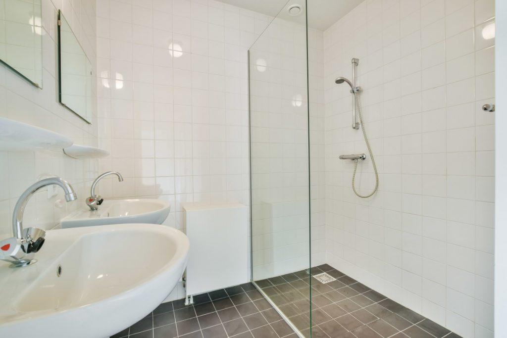 Alle appartementen zijn voorzien twee toiletten, een voor gasten en een in de badkamer, een dubbele wastafel met douche en de grotere appartementen zijn voorzien van 2 badkamers.