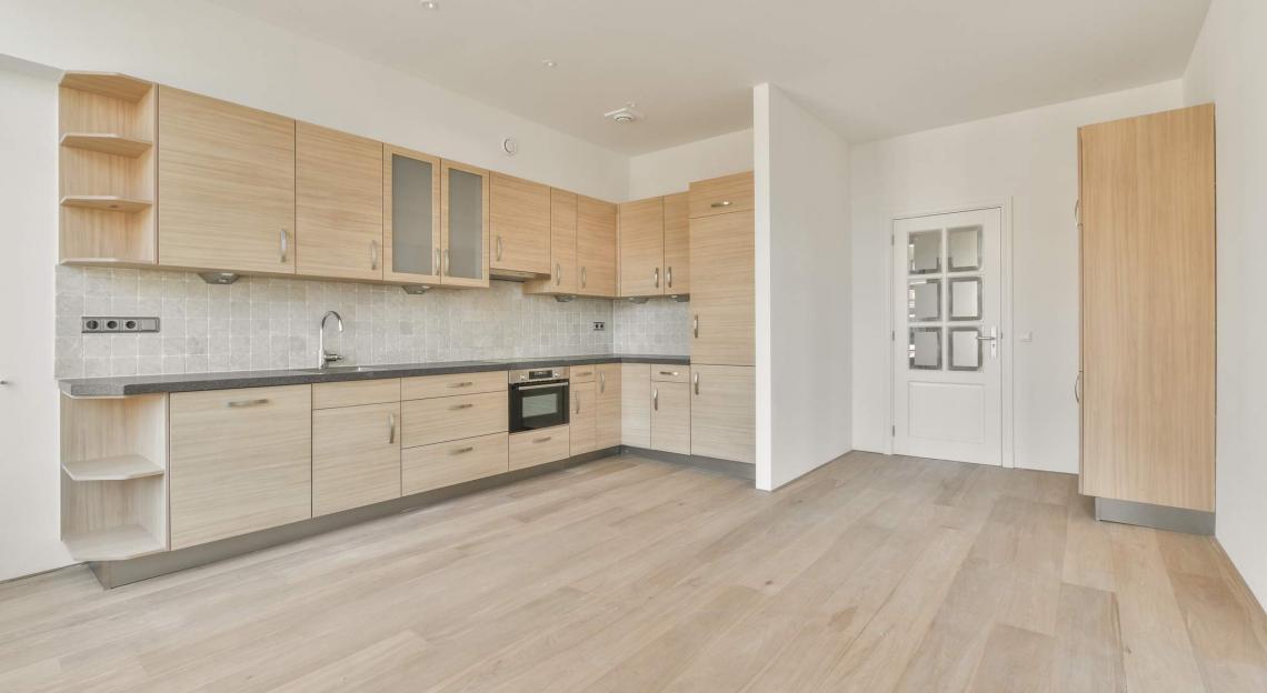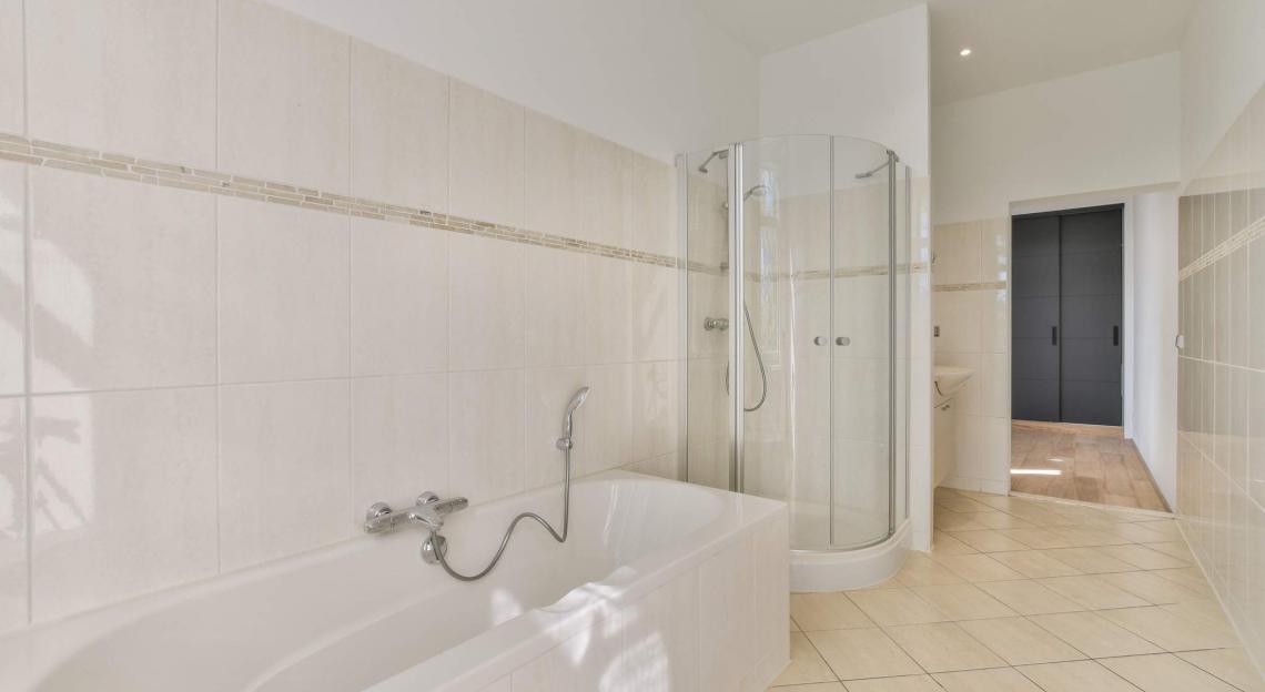 Ruim 140 m2 met twee ruime slaapkamers en twee complete badkamers. Open keuken met en suite ruime woonkamer.