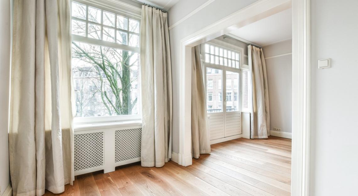 Zeer luxueus, volledig gestoffeerd dubbel bovenhuis in Oud-Zuid met drie slaapkamers, twee badkamers een sauna
