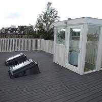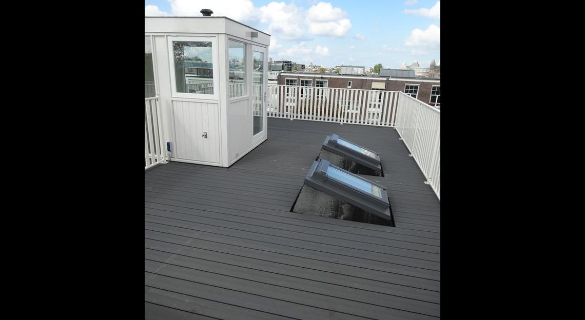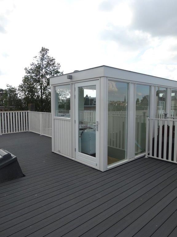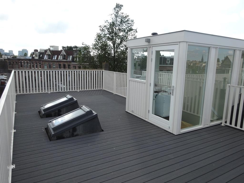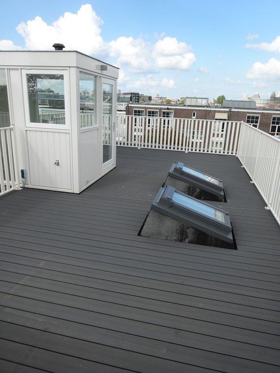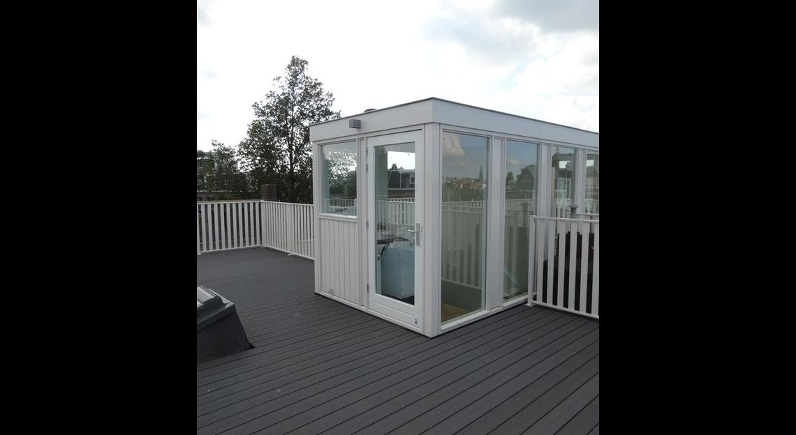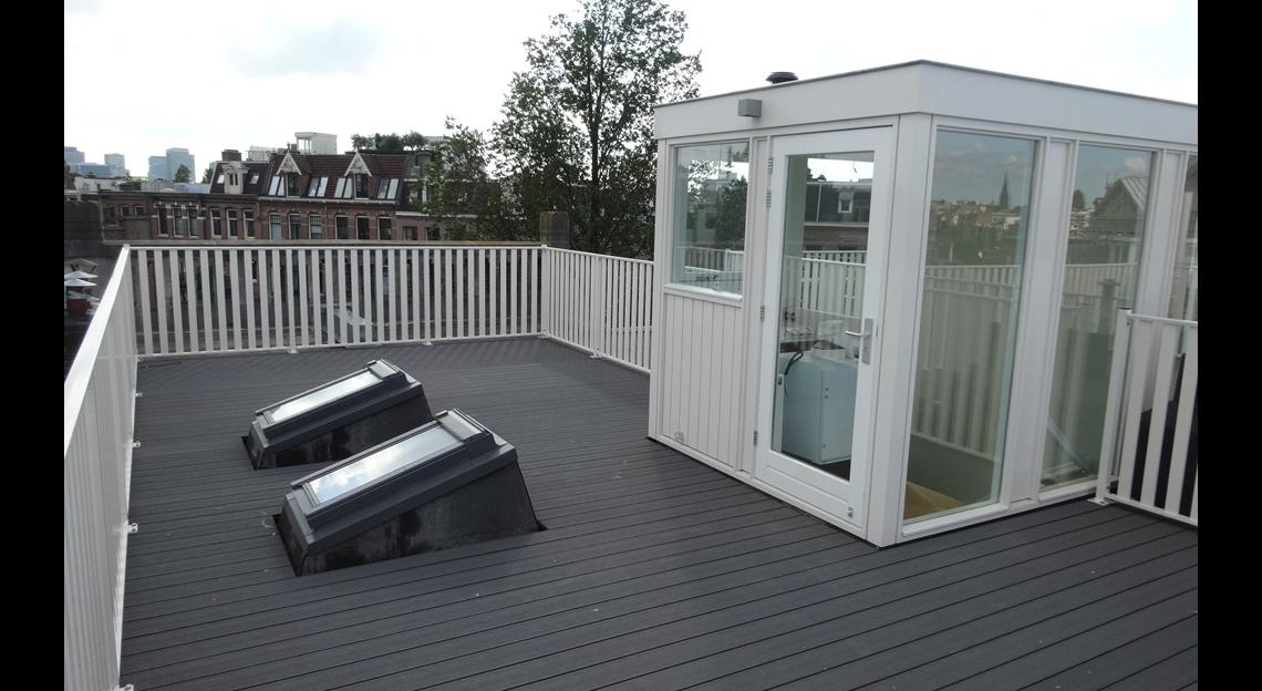 ruim dakterras voorzien van dakopbouw en pantry met uitzicht over het Museumplein.