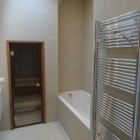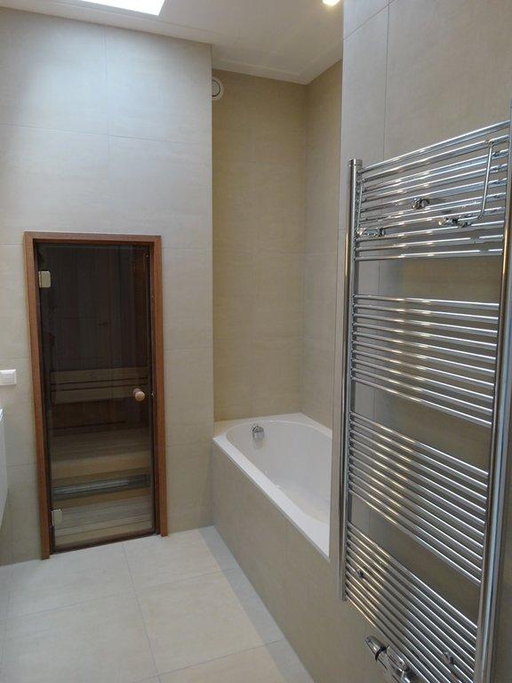 - One bathroom with bath, shower and sauna;
