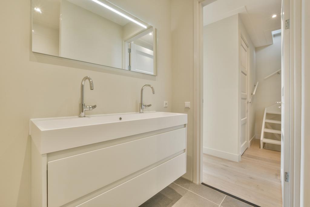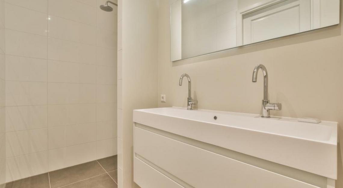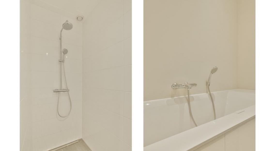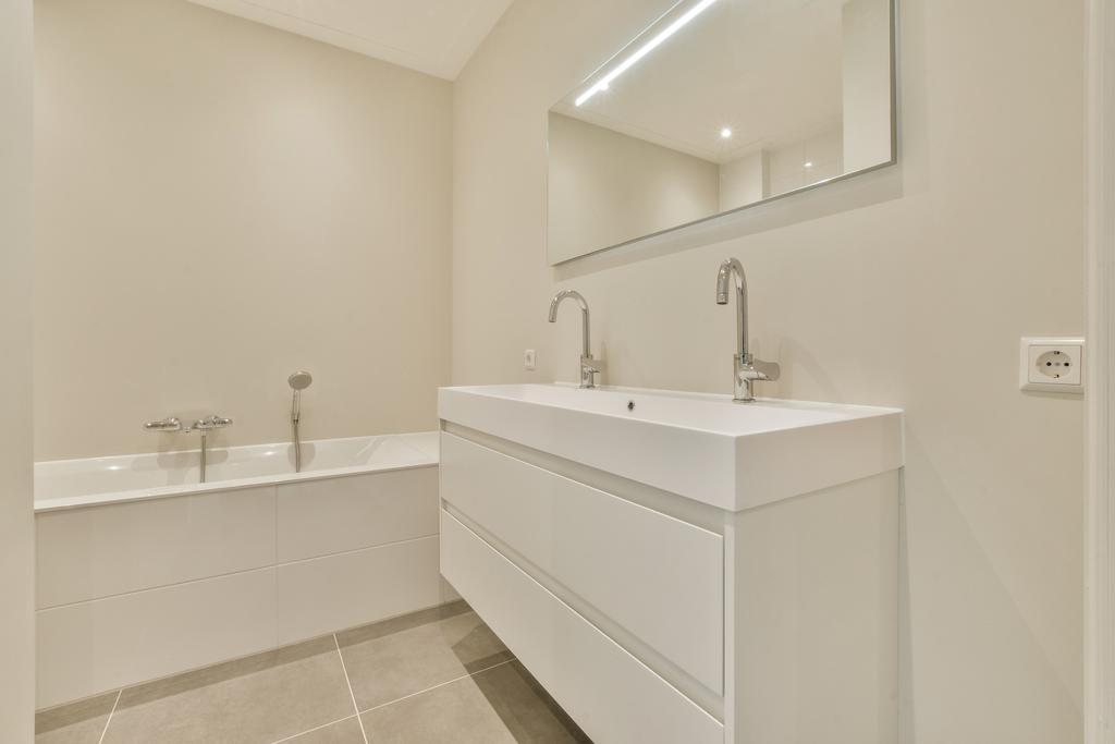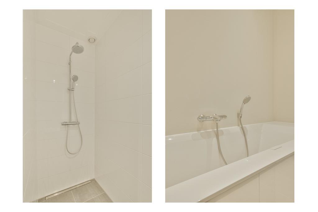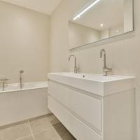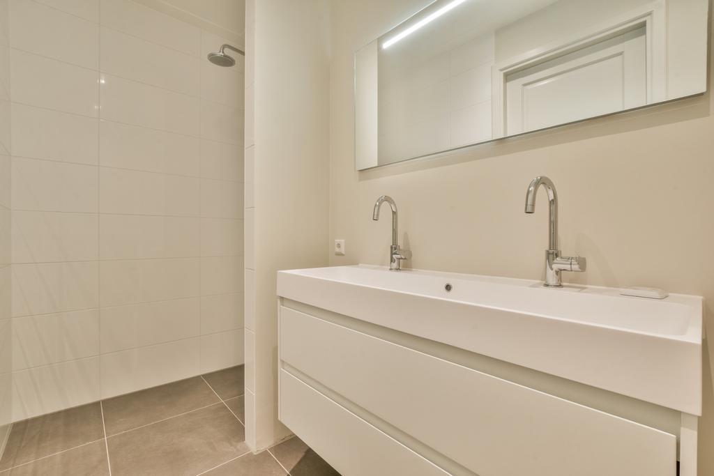 De badkamer aan de master bedroom is voorzien van een inloopdouche en een breed wastafelmeubel. De tweede badkamer heeft een ligbad, een inloopdouche en een breed wastafelmeubel.