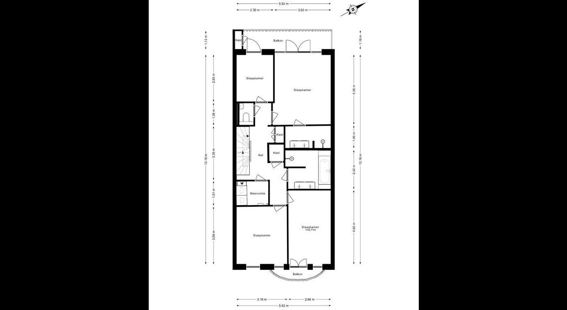 Entree via een portiek, eigen voordeur op de 3e verdieping, entree in de woning via een ruime hal.