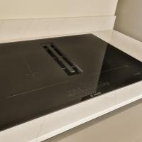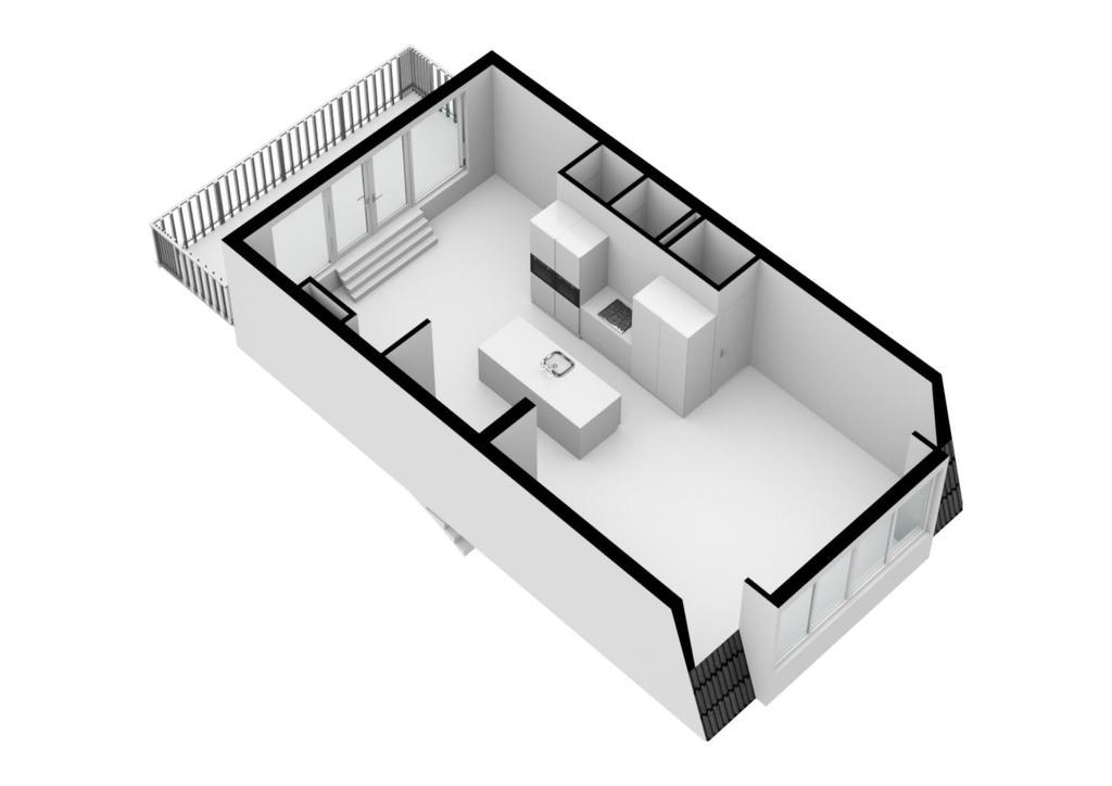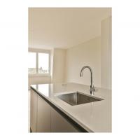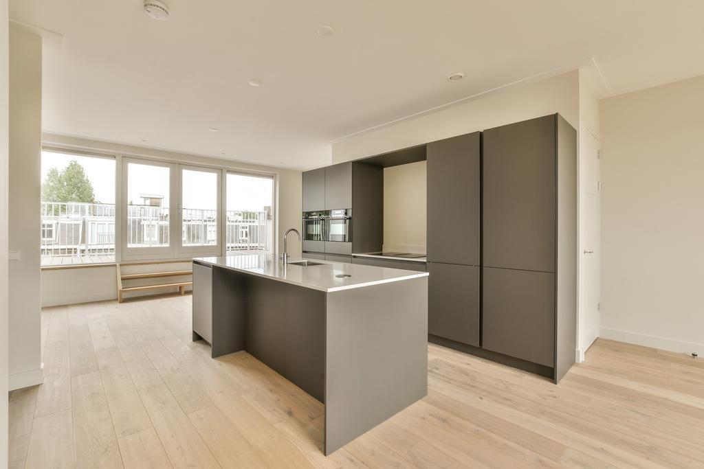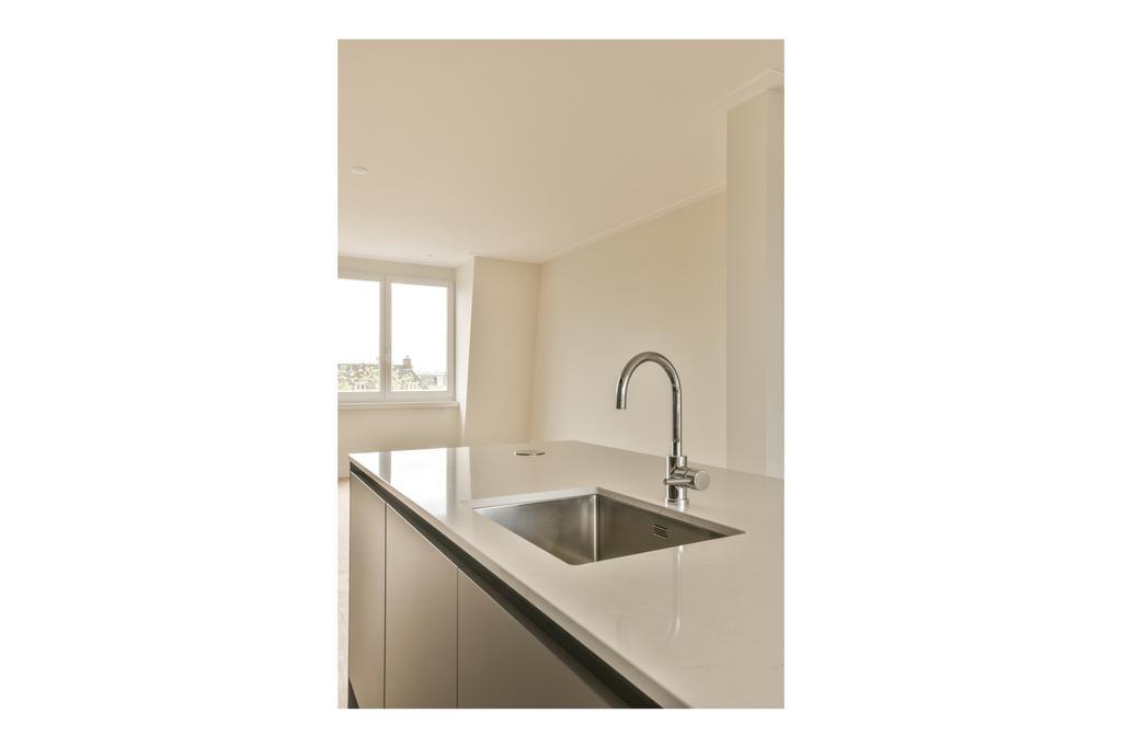 Op de 4e verdieping de zeer royale woonkamer met open keuken welke is voorzien met diverse inbouw apparatuur. En toegang tot het ruime balkon. En een separaat toilet.