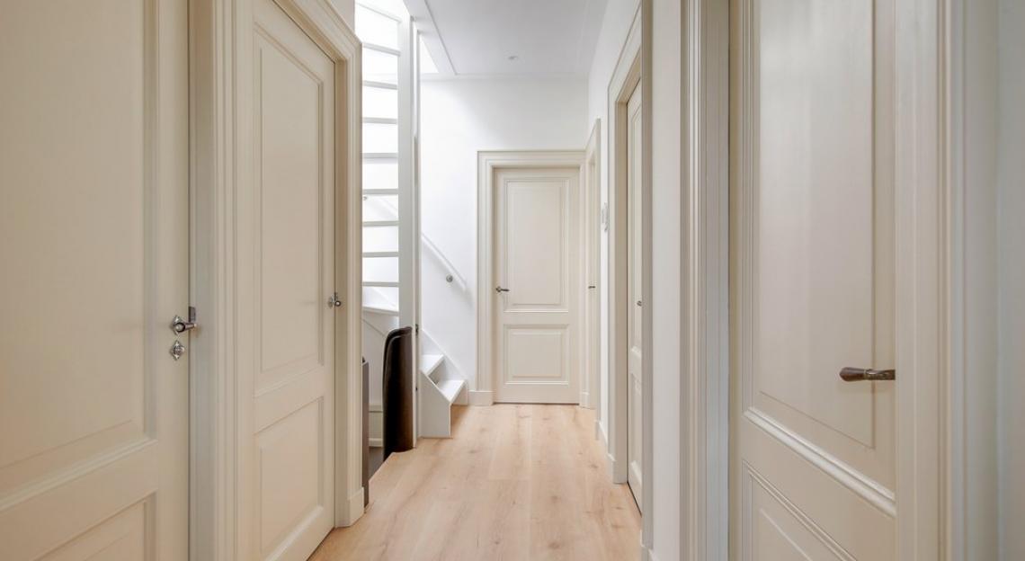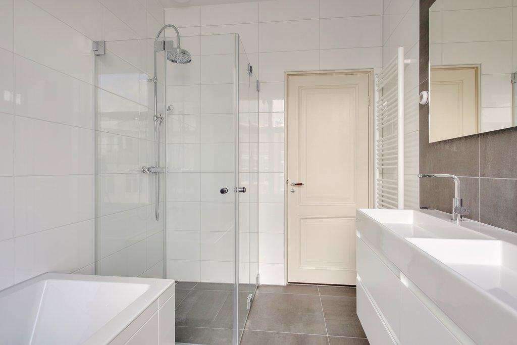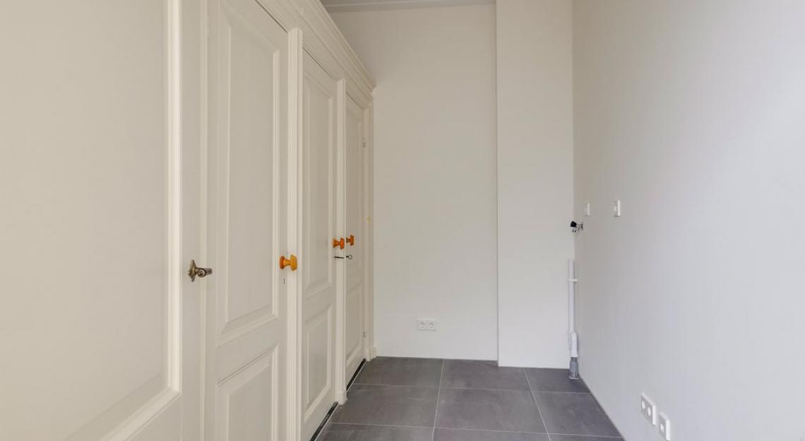 Tweede verdieping: drie zeer ruime slaapkamers, lichte badkamer met bad, douche, dubbele wastafel, wasruimte met originele linnenkasten waar tevens de wasmachine en droger geplaatst kunnen worden, separaat toilet.
