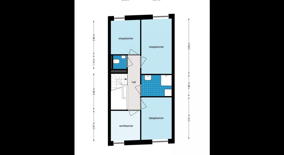 - Via de trap welke vanuit de woonkamer te betreden is, toegang naar de 3de verdieping